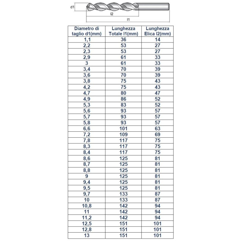 Punte per alluminio e leghe leggere serie normale